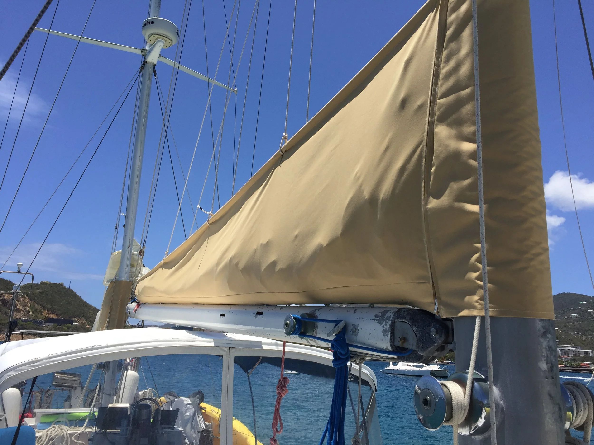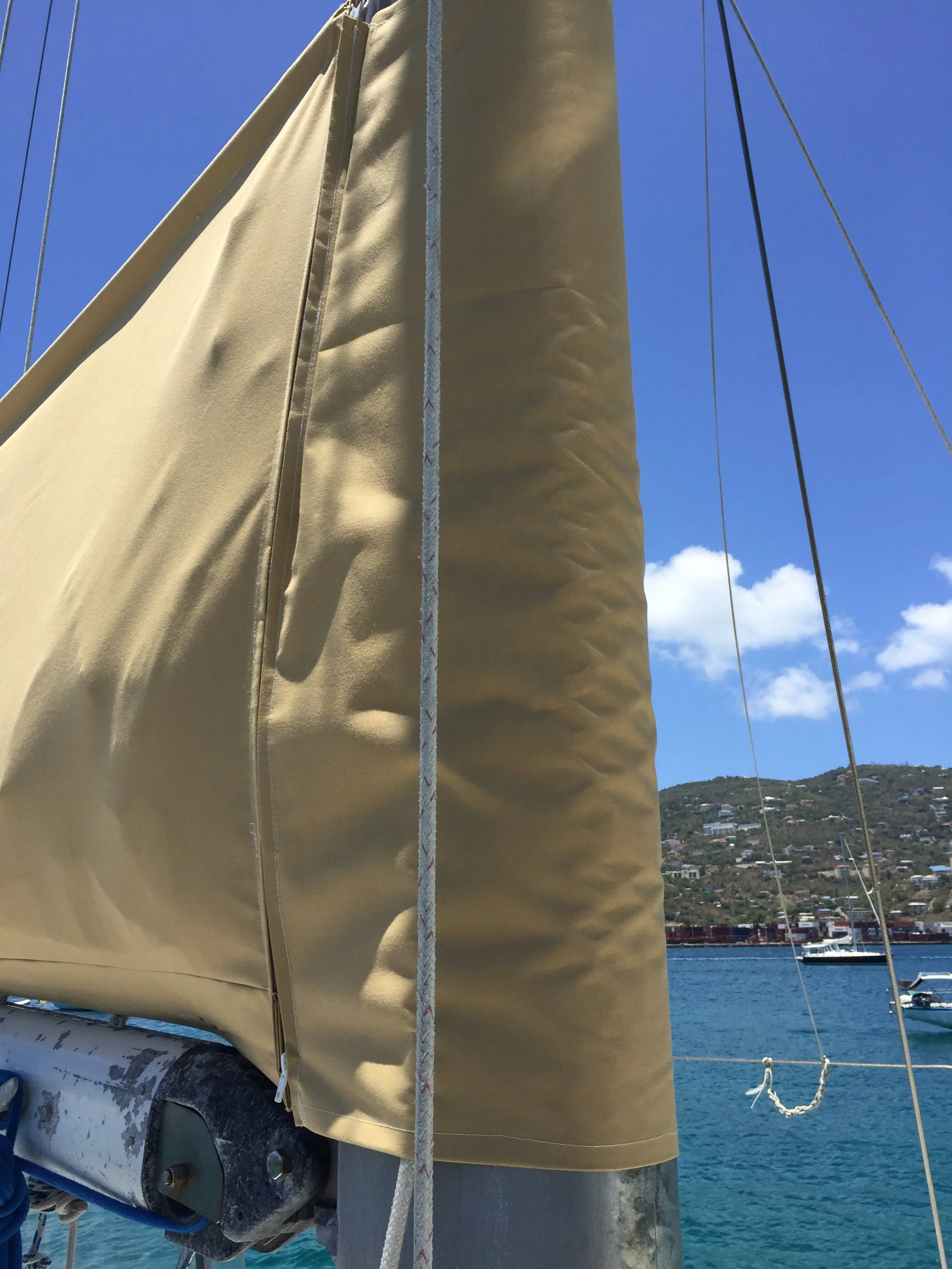 Replaced broken mizzen cover zipper